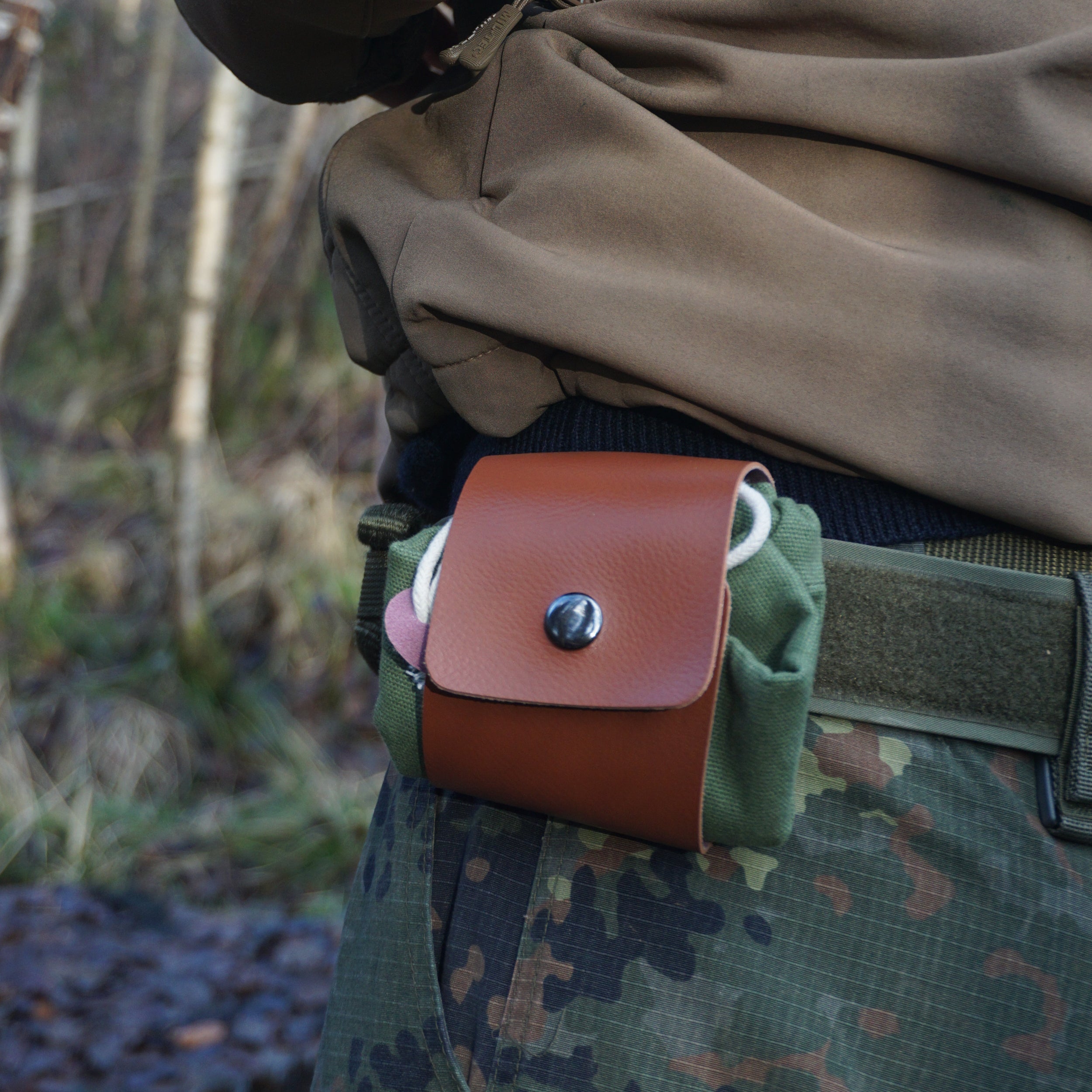 Attach the closed NaturVibes Belt Bag, measuring 3.94 x 3.15 inches (10 x 8 cm), to your belt using the belt loop and easily unfold it to 9.06 x 8.27 inches (23 x 21 cm) when needed.