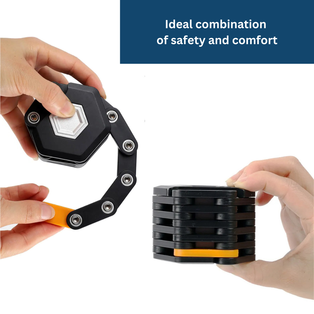 Experience maximum freedom and flexibility with our Foldable, Space-Saving Premium Bike Lock. Perfectly designed for your active lifestyle, it folds easily and can be stored in your bag or attached to the bike frame without taking up extra space.