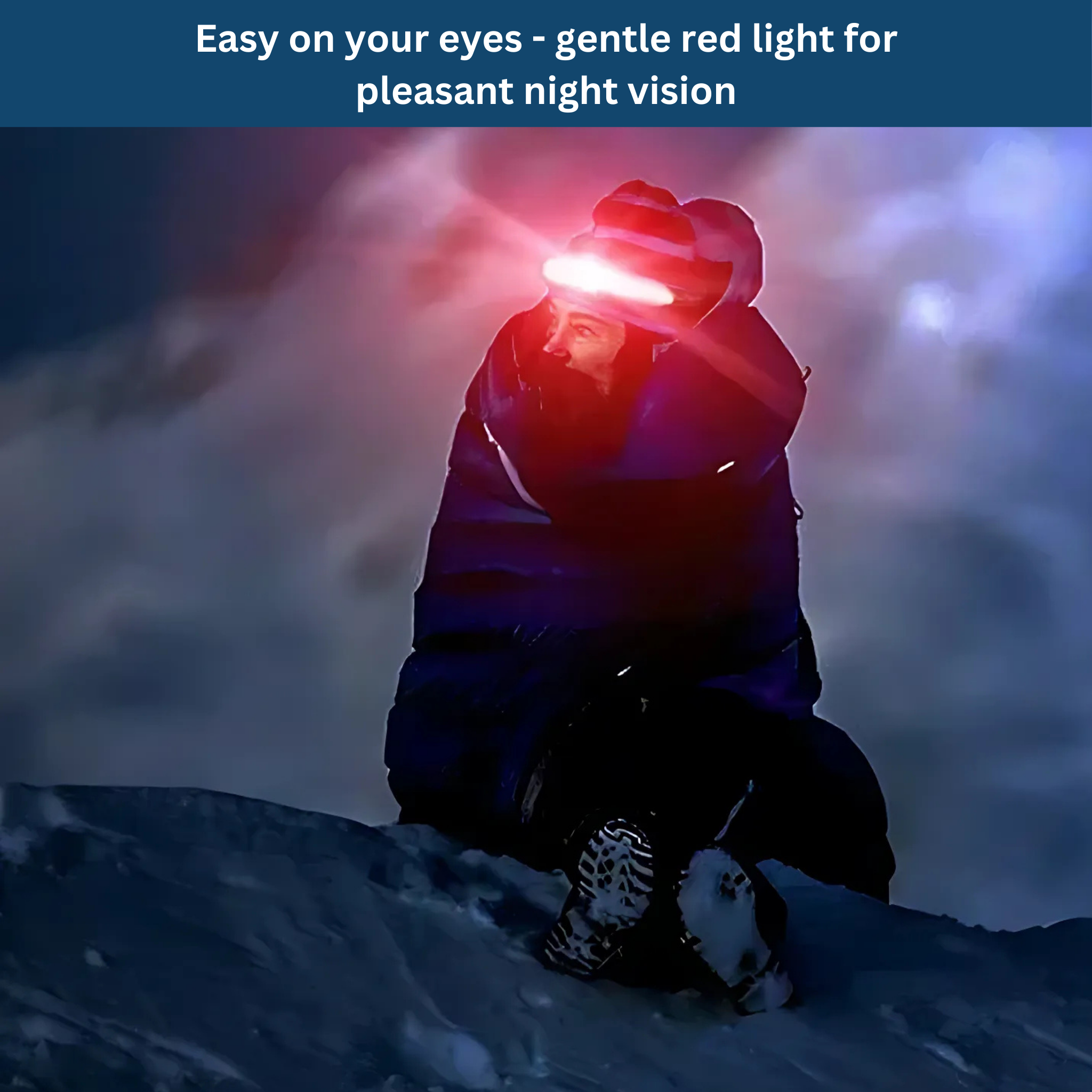 The switchable red light functionprotects your eyes in the dark and prevents insects from being attracted – ideal for camping, fishing, or nighttime operations.