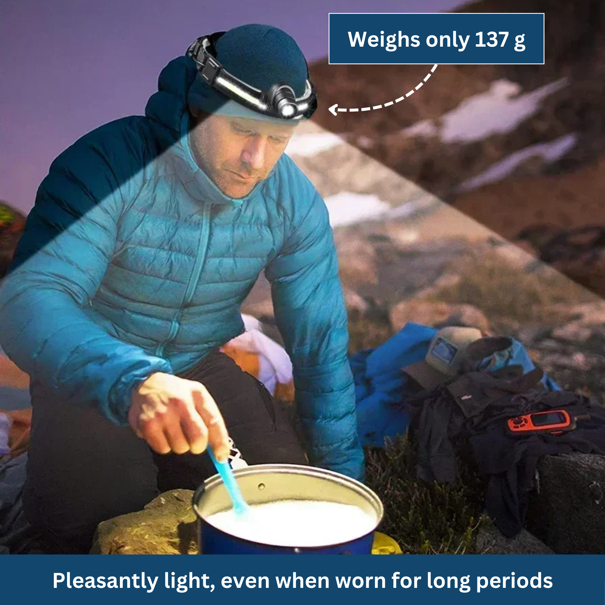 Thanks to the adjustable headband, the headlamp sits securely and comfortably.