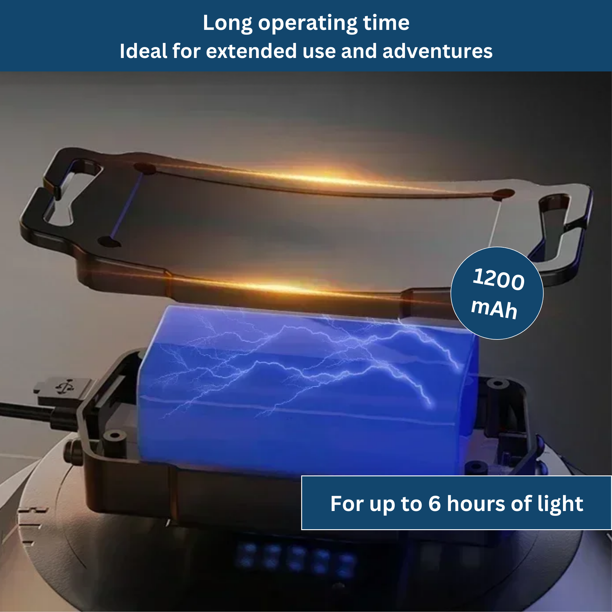 With its 1200 mAh battery, the Blaze headlamp lasts up to 6 hours.