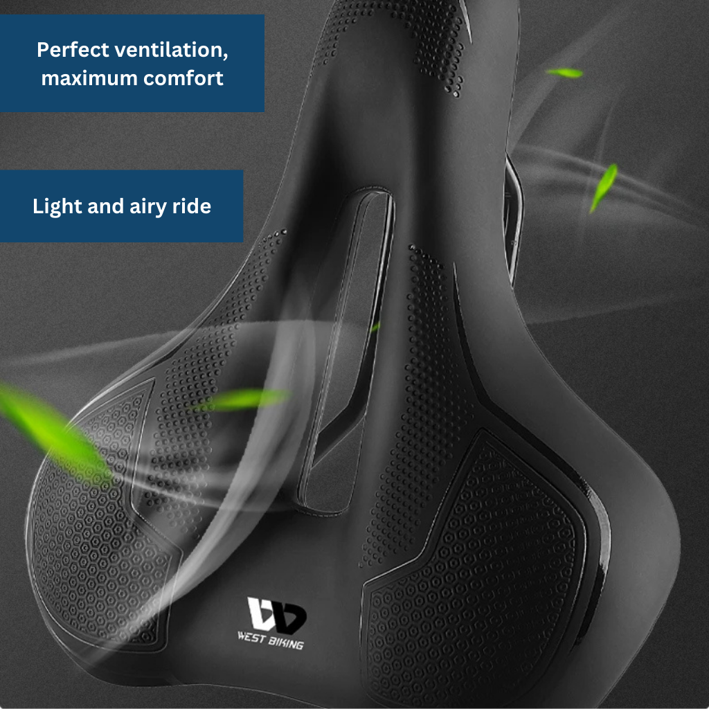 The hollow design of the saddle ensures perfect ventilation, keeping the Comfy Bike Saddle dry and breathable.