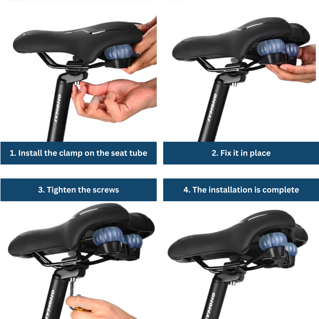 The Comfy Bike Saddle can be easily mounted on a standard saddle post, a two-rail system, or a clamp tube.
