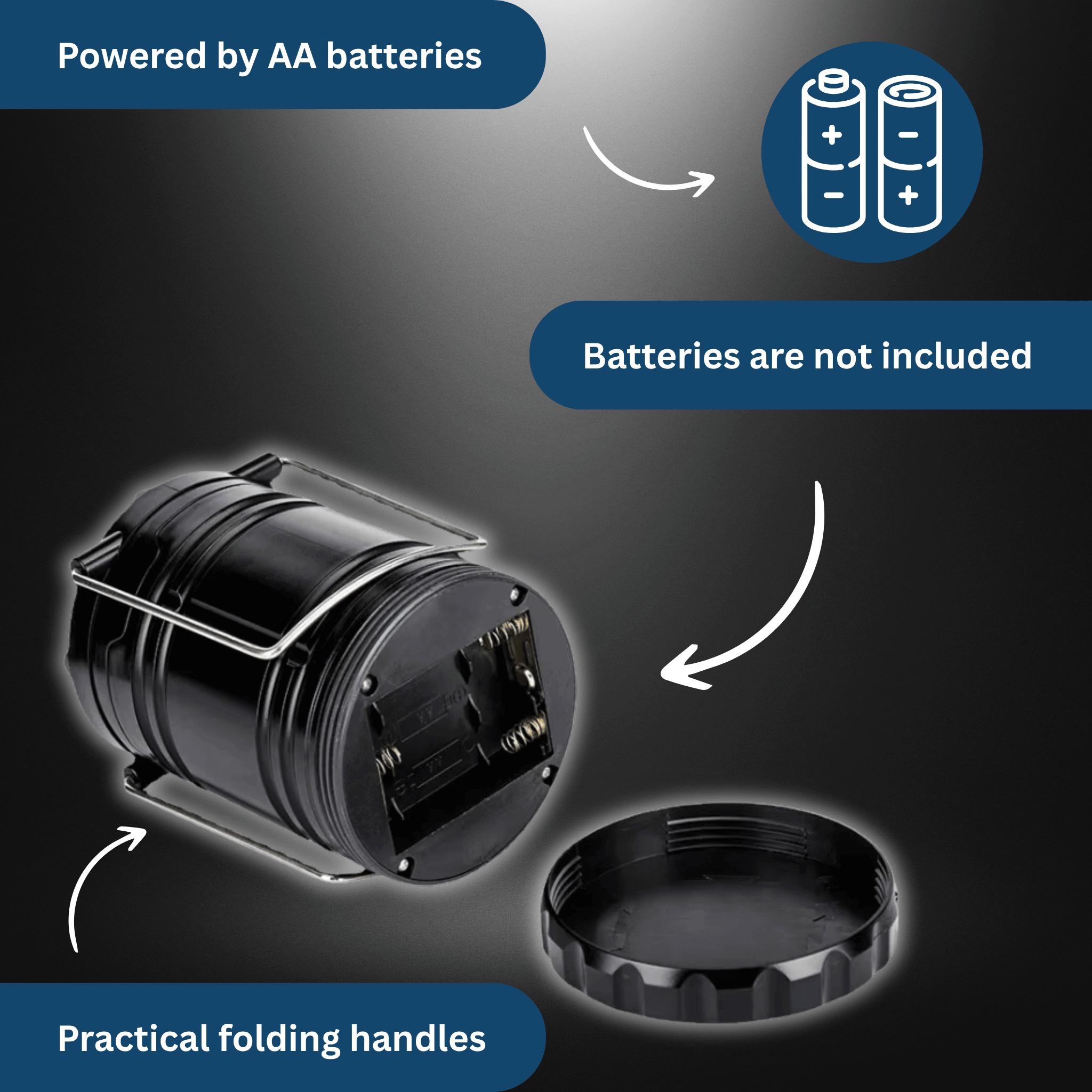When collapsed, the lantern is very compact and fits easily into a backpack or on a shelf.