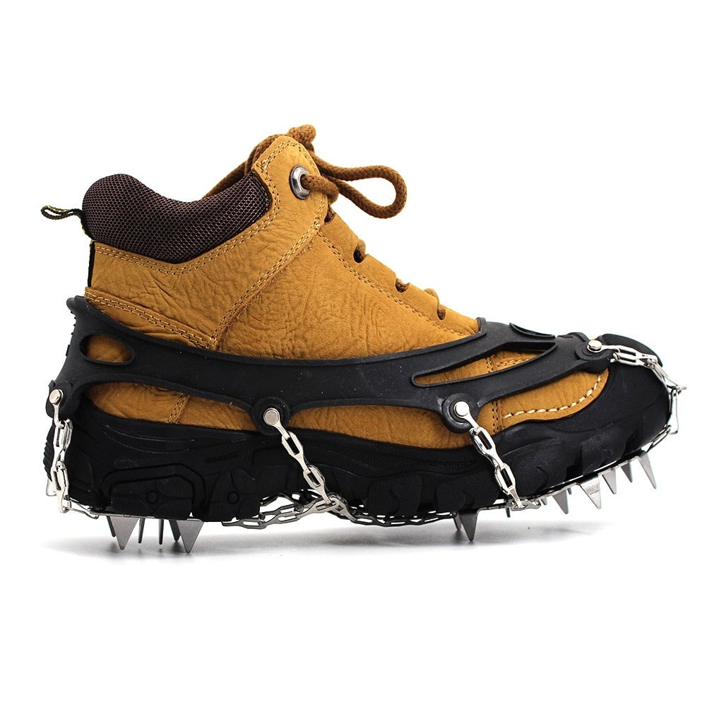 The crampons are made from high-quality, durable TPE rubber and rust-resistant premium manganese steel.