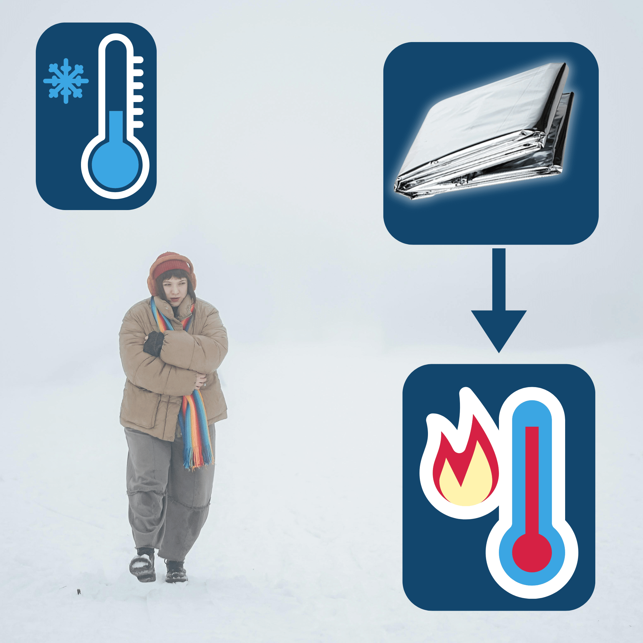 The ThermoShield emergency blanket not only protects against cold, but also on hot days.
