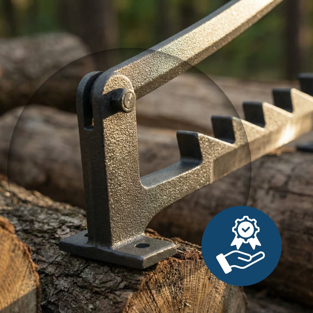 You place the wood in the groove, pull the lever downward, and the blade splits the wood efficiently and precisely – without electricity.
