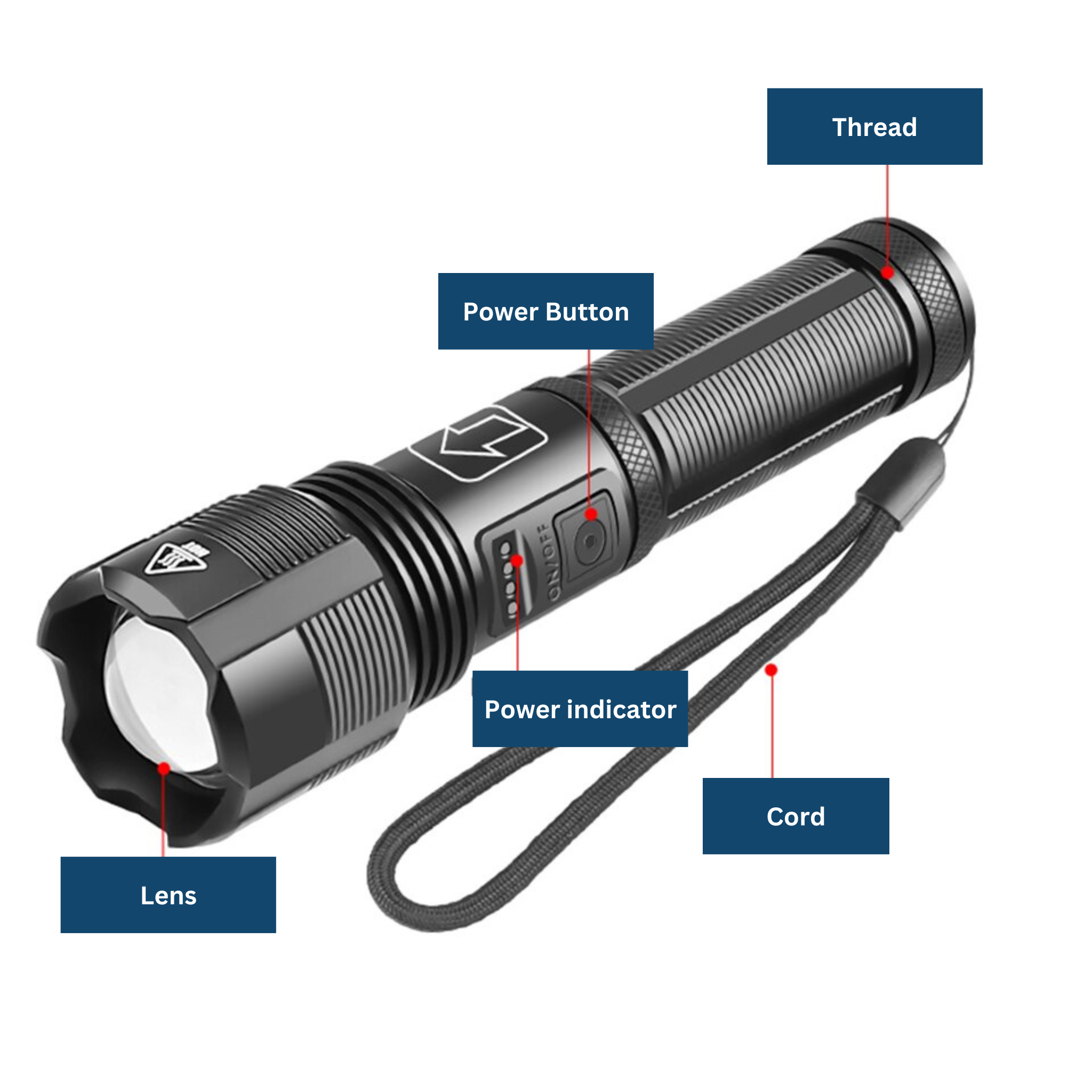 The casing of our NaturVibes Flashlight POWER-S260 is made from a high-quality aluminum alloy. This allows you to use it in emergencies, even to break glass. All other components are designed with maximum efficiency and durability in mind.
