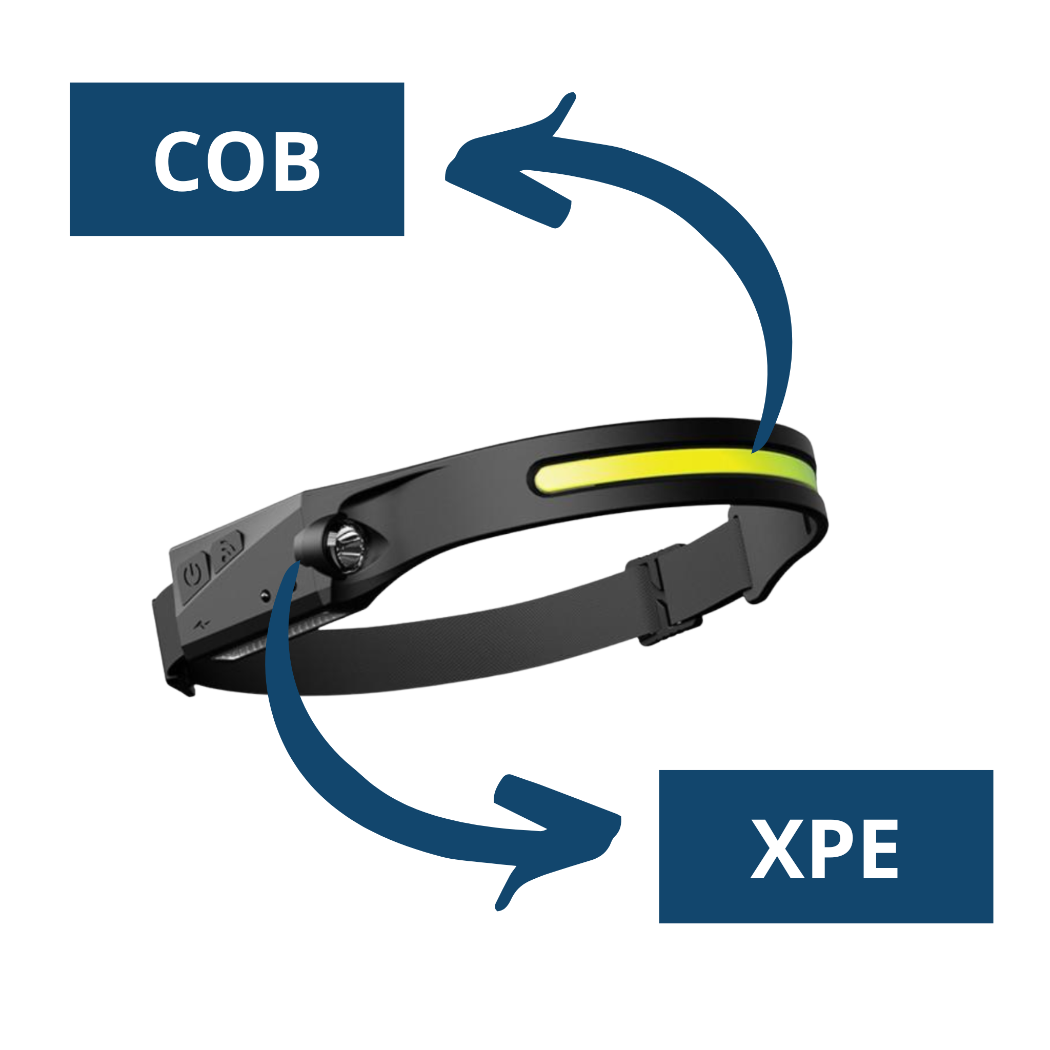 The special feature of our NaturVibes Headlamp is the long COB light strip integrated along the forehead.