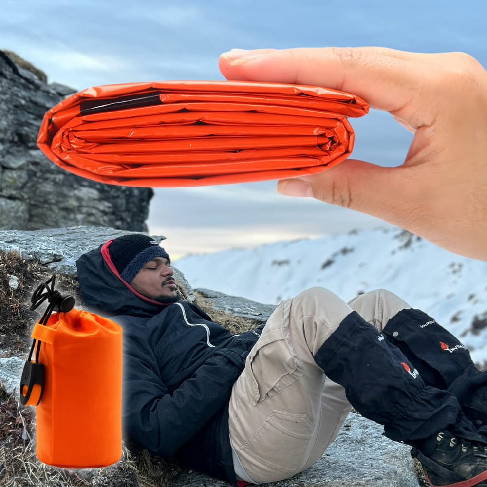 Whether you’re trekking, traveling, or exploring the wilderness, the HeatSafe Sleeping Bag combines warmth, protection, functionality, and durability in one compact design.