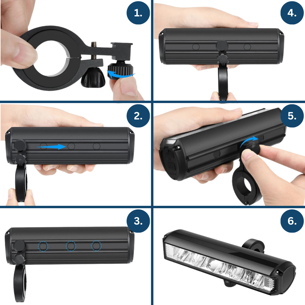 The Maxi Frontlight comes with two stable mounts for easy installation on your handlebars.