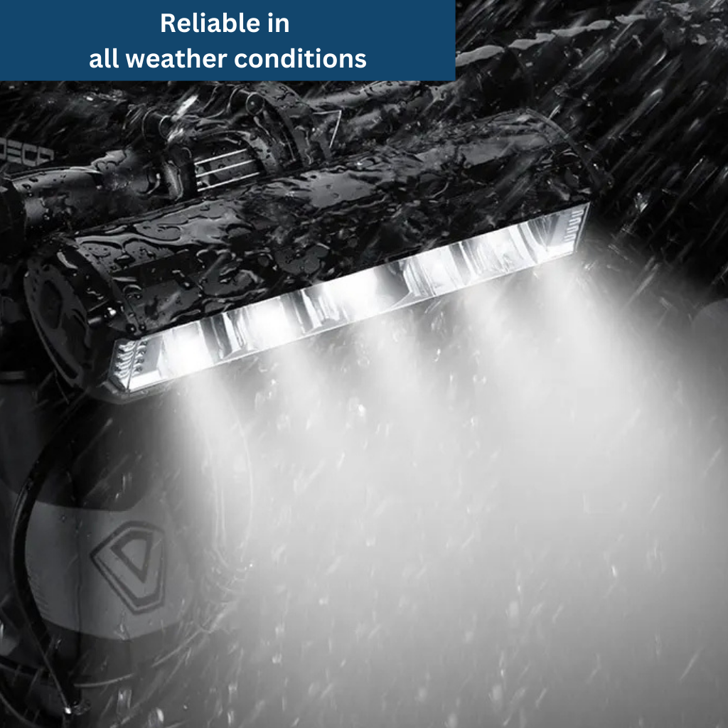 With its IPX5 certification, the Maxi Frontlight is resistant to rain and splashing water.