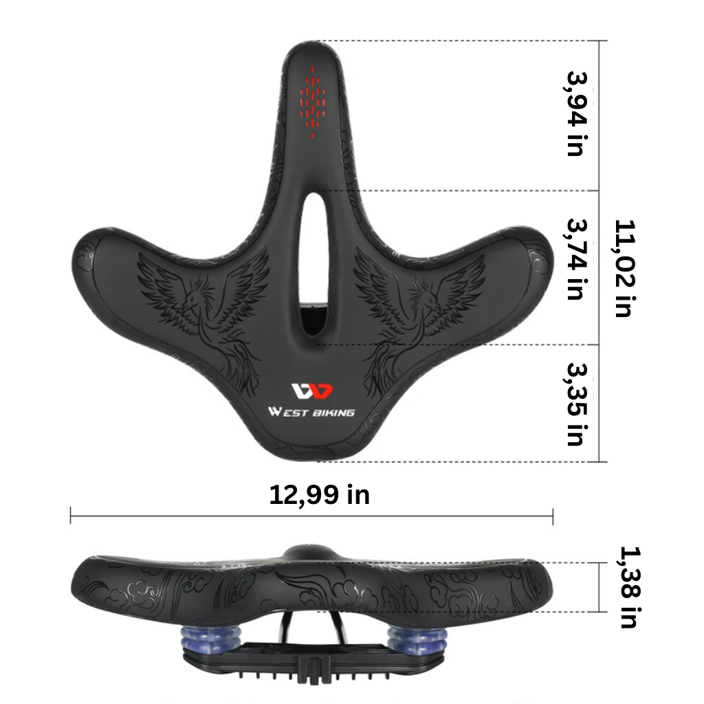 With our NaturVibes Phoenix Bike Saddle, you’ll ride in comfort, thanks to its extra-wide design, memory foam, and our innovative shock absorption system – like riding on clouds!