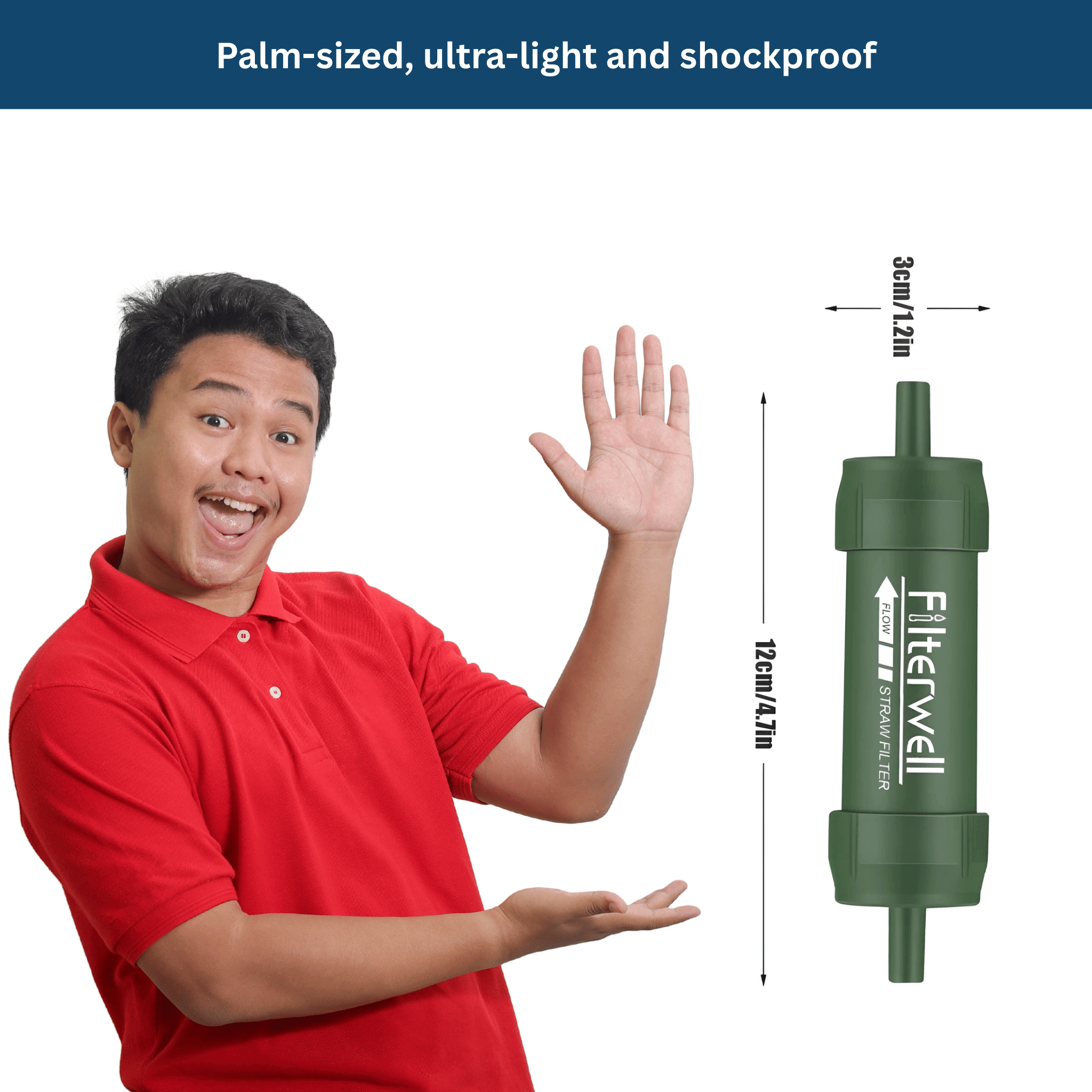 The filter is compact, ultra-light, and impact-resistant, fits in your palm, and can be reused many times through simple backflushing.