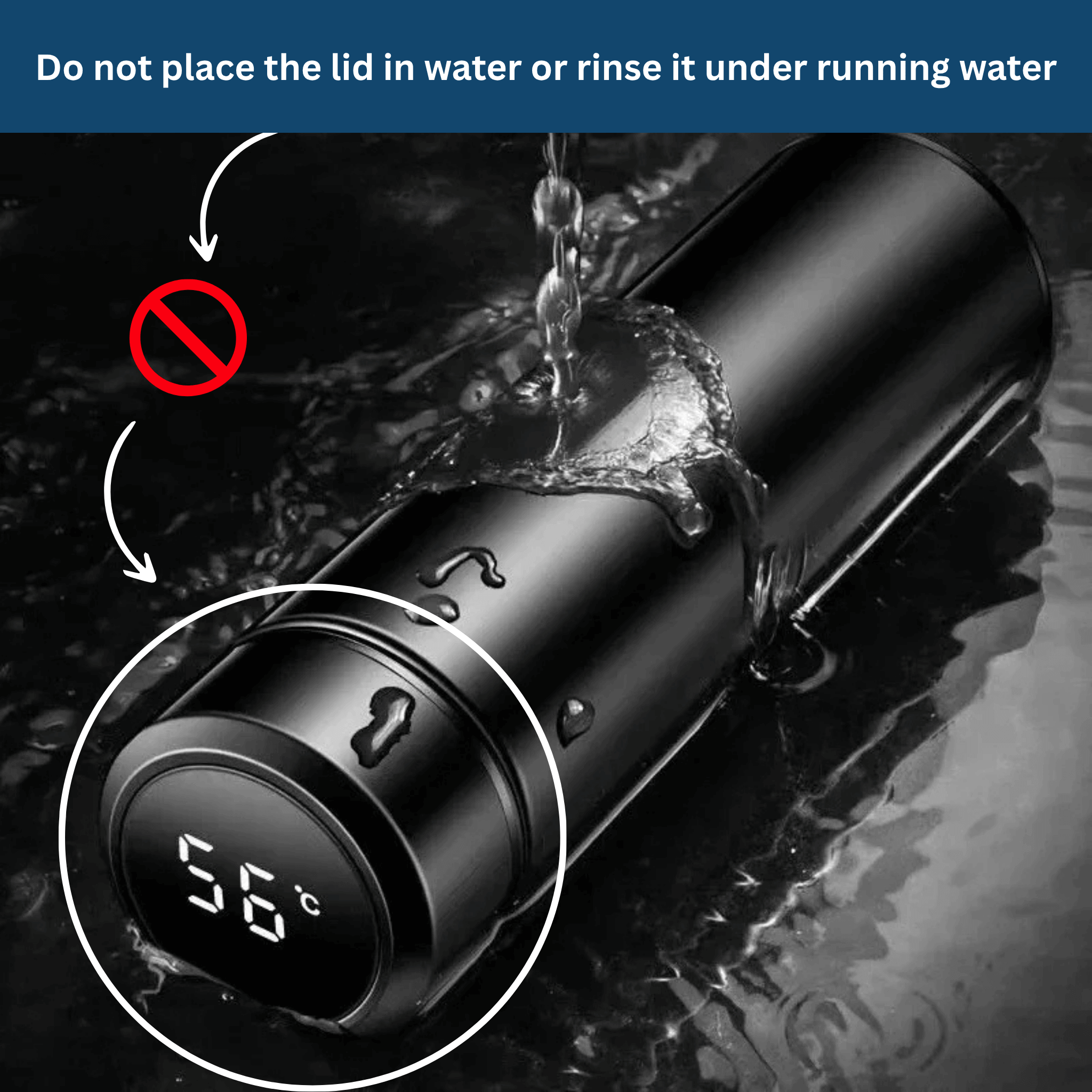 To protect the smart temperature display, do not submerge the lid in water or rinse it under running water.