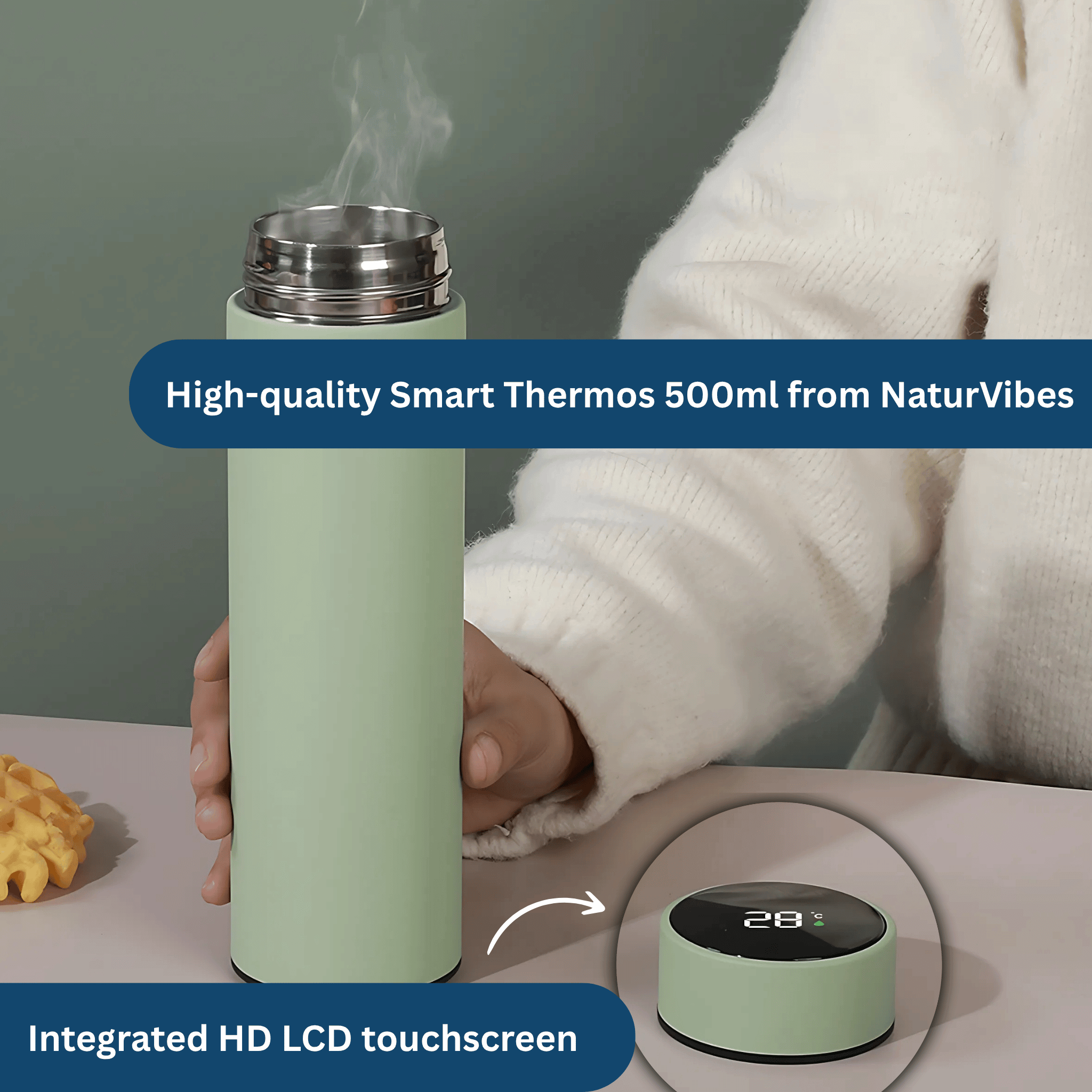 With the NaturVibes Smart Thermos 500ml, enjoy your beverages anywhere — at home, in the office, or on the go.