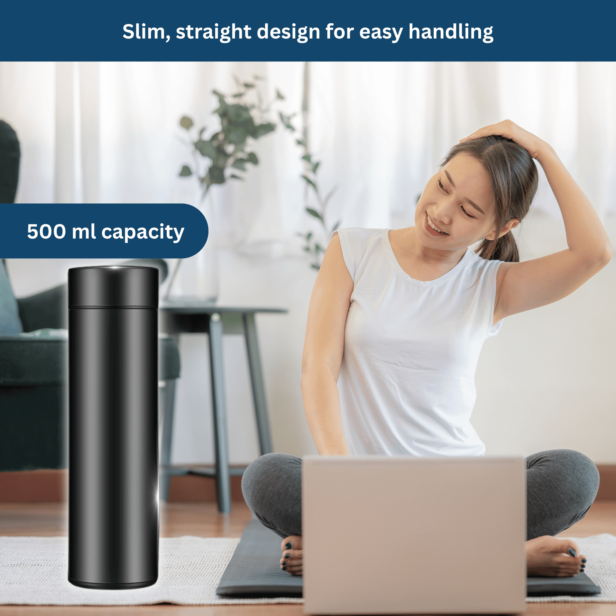 The Smart Thermos 500ml is lightweight, compact, and ideal for the office, travel, outdoor activities, yoga, camping, or picnics.