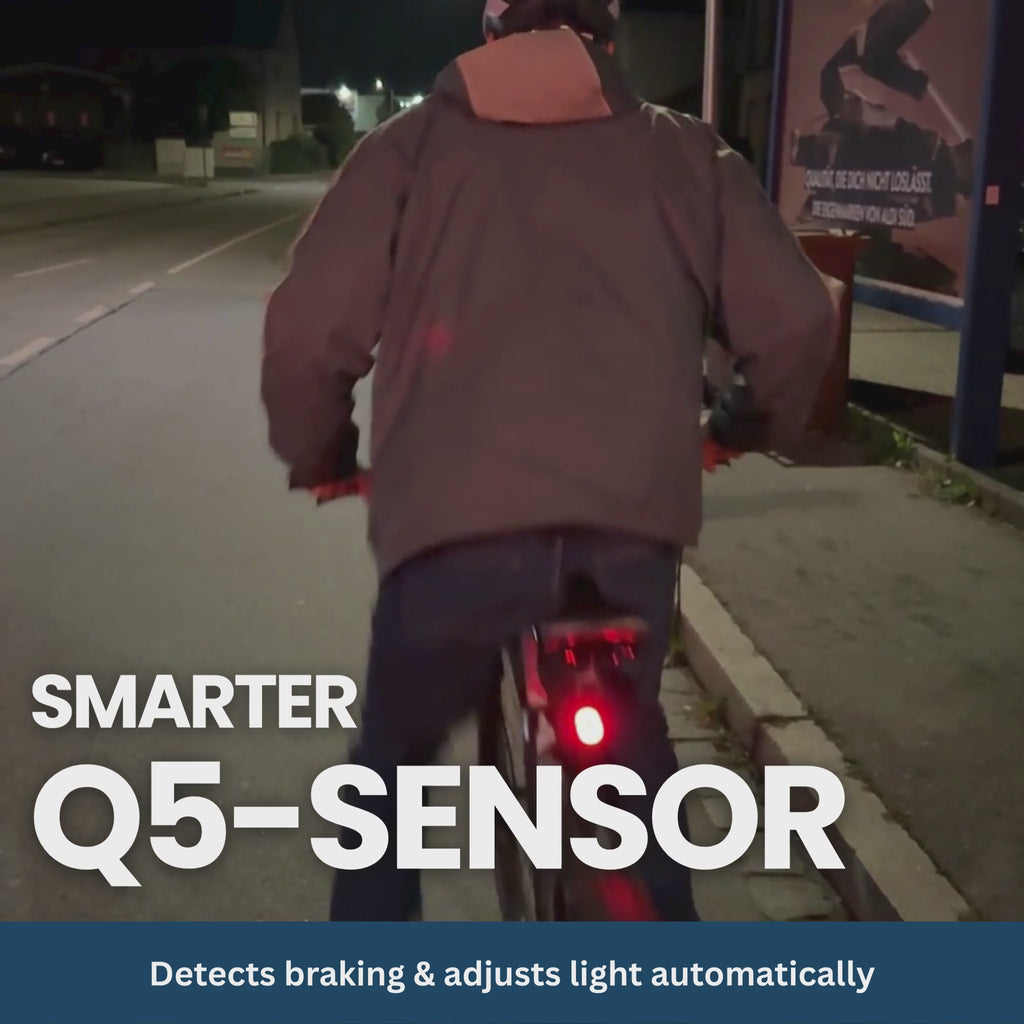 The highly intelligent Q5 sensor immediately detects when you're braking while cycling and activates the brake light of the Smartlight.