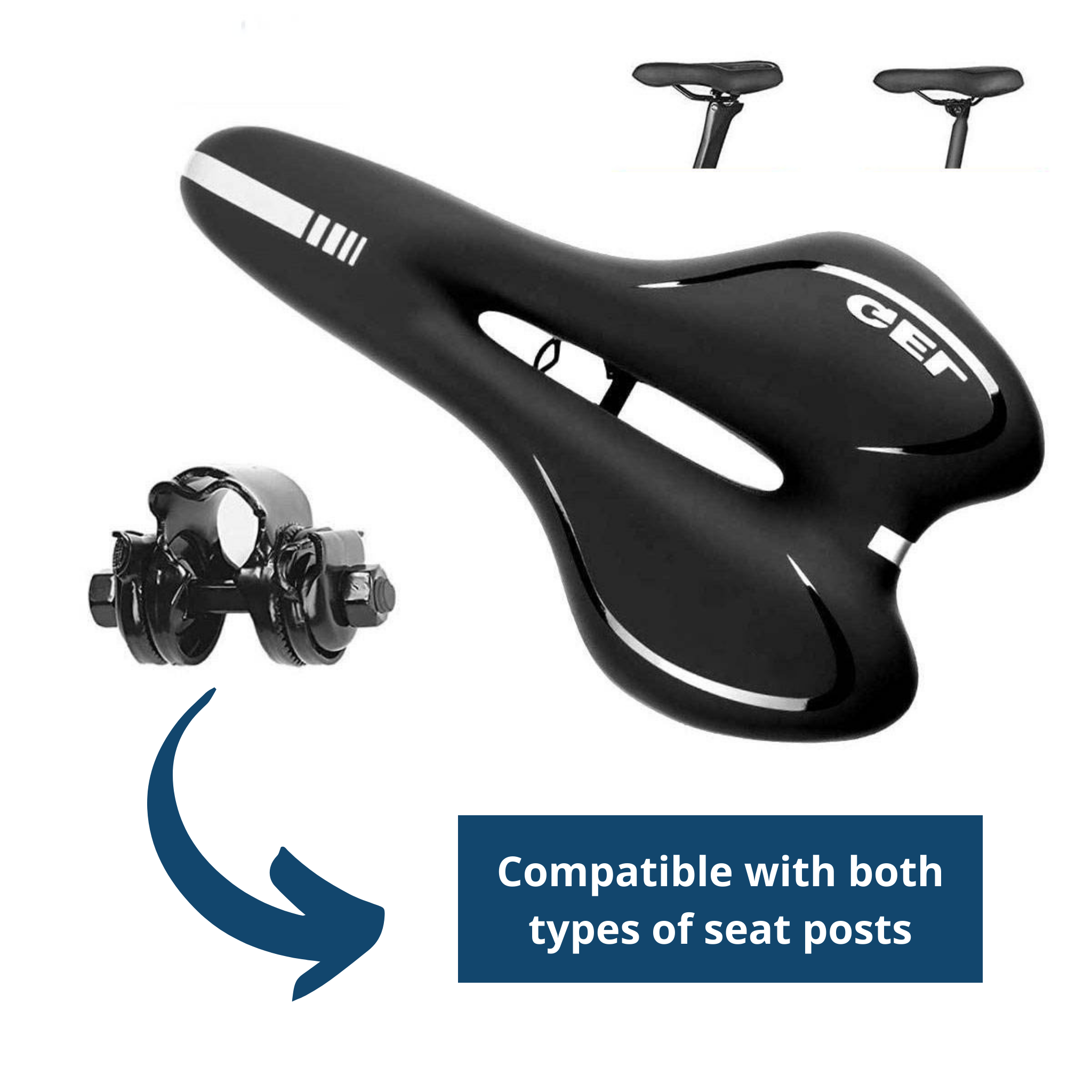 Our NaturVibes SpeedGel Bike Saddle fits both common types of seat posts: it works with both a clamp seat post and a patent seat post.