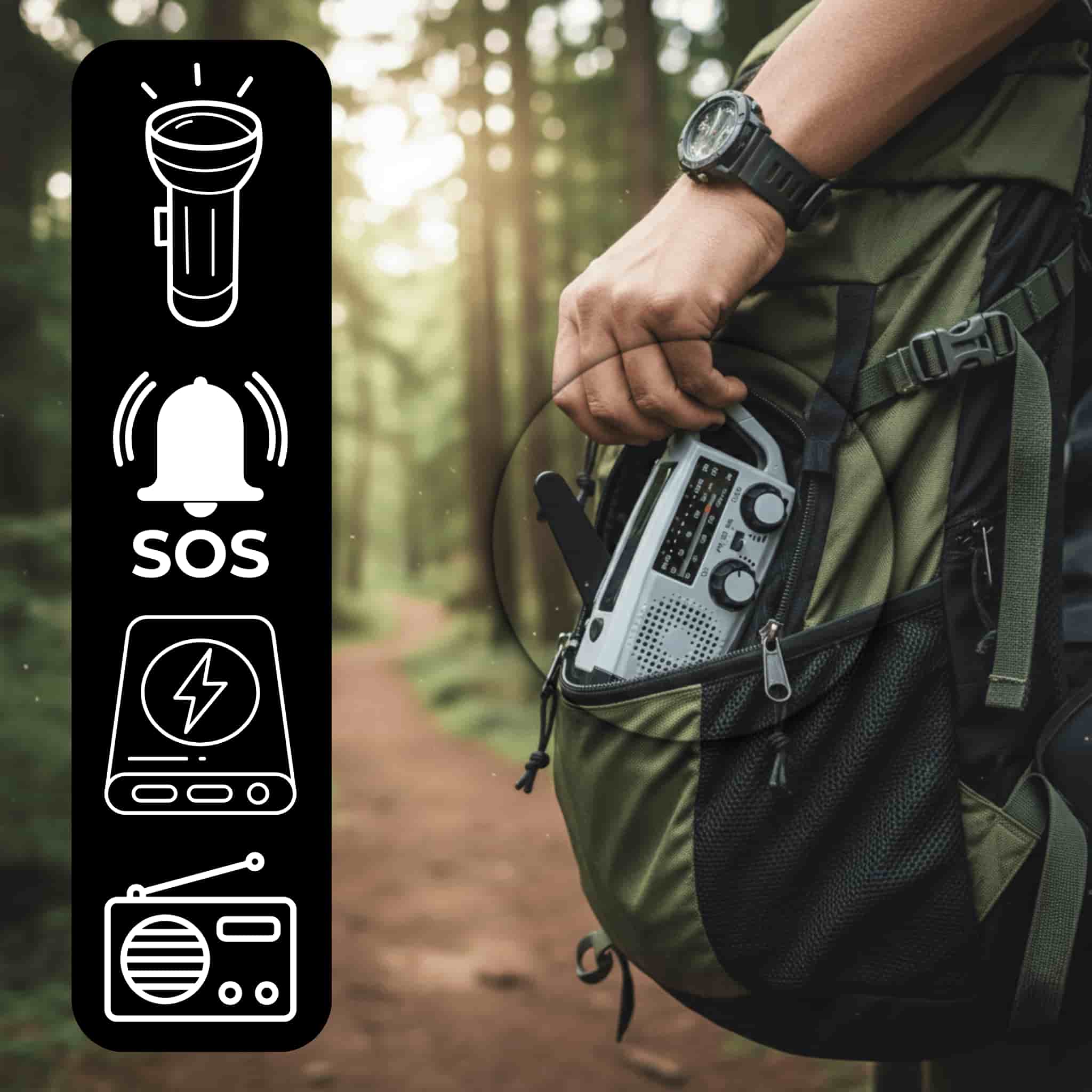 You’ll always have a powerful radio, a bright flashlight, and an SOS function right at your fingertips, all in one device.