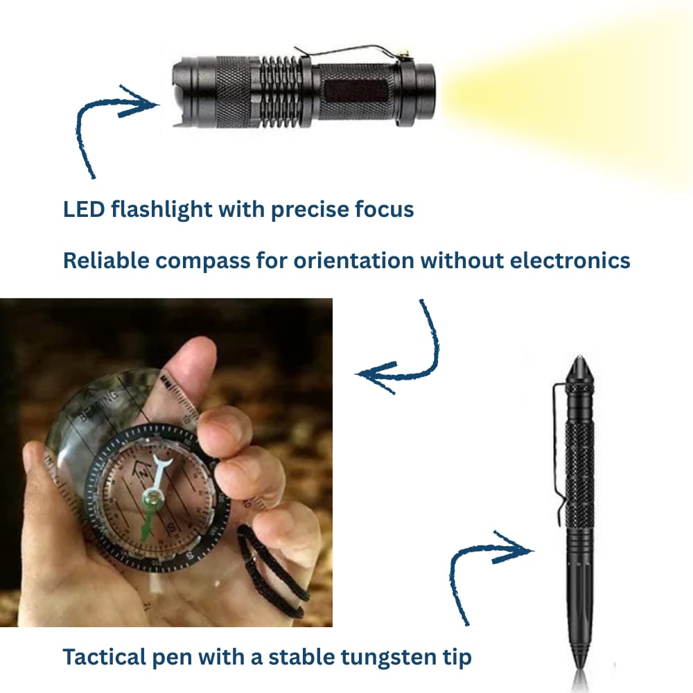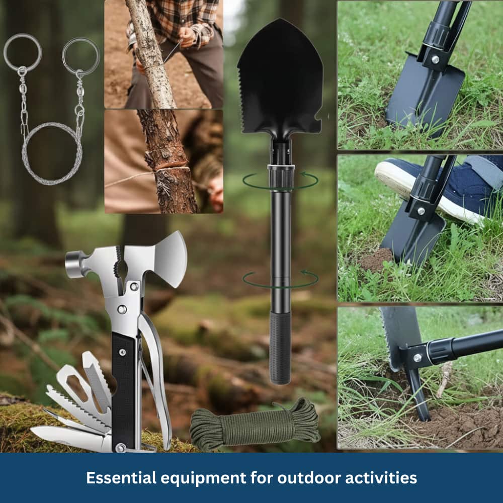 It combines first aid supplies, survival tools, and practical outdoor essentials, ensuring you are well prepared for challenging conditions.