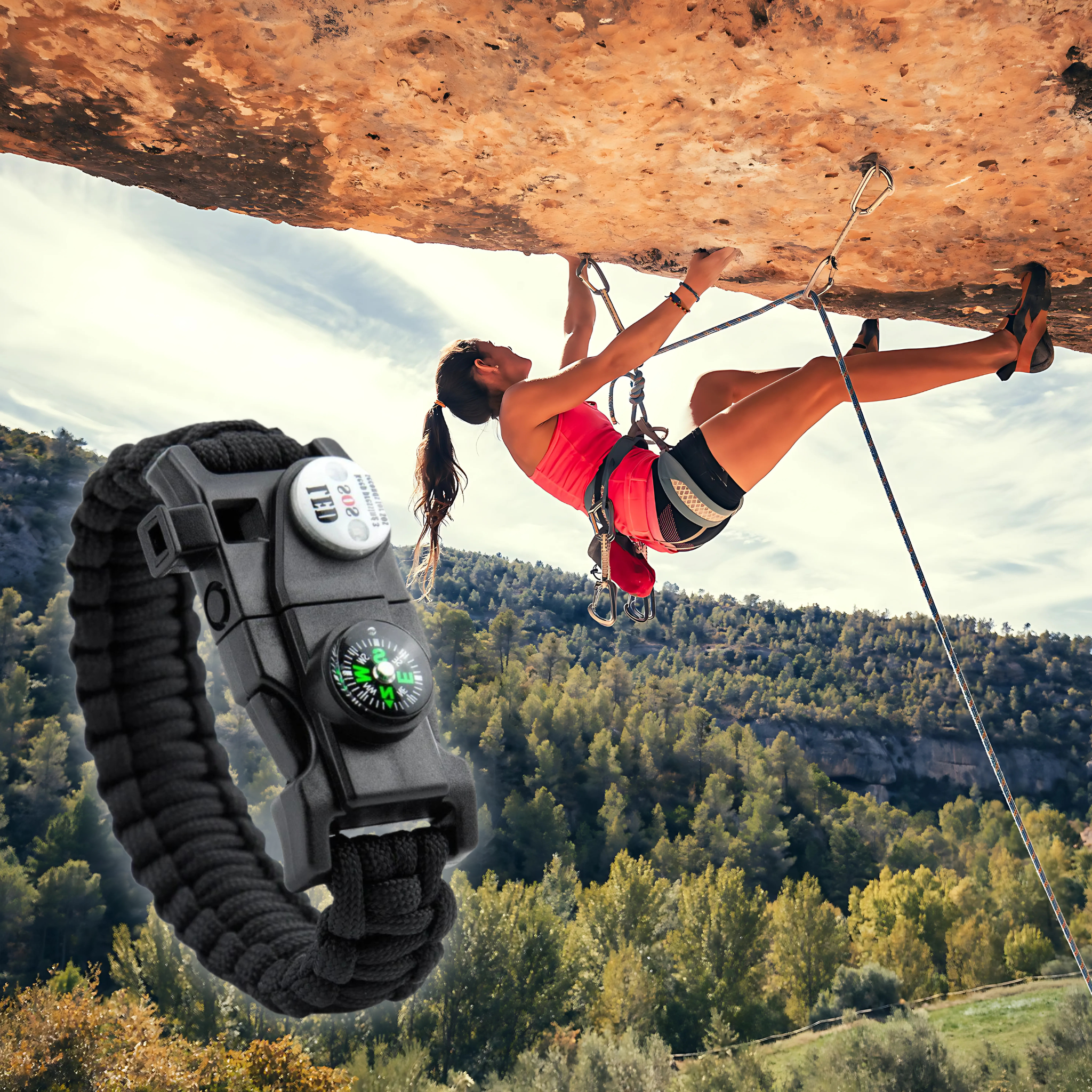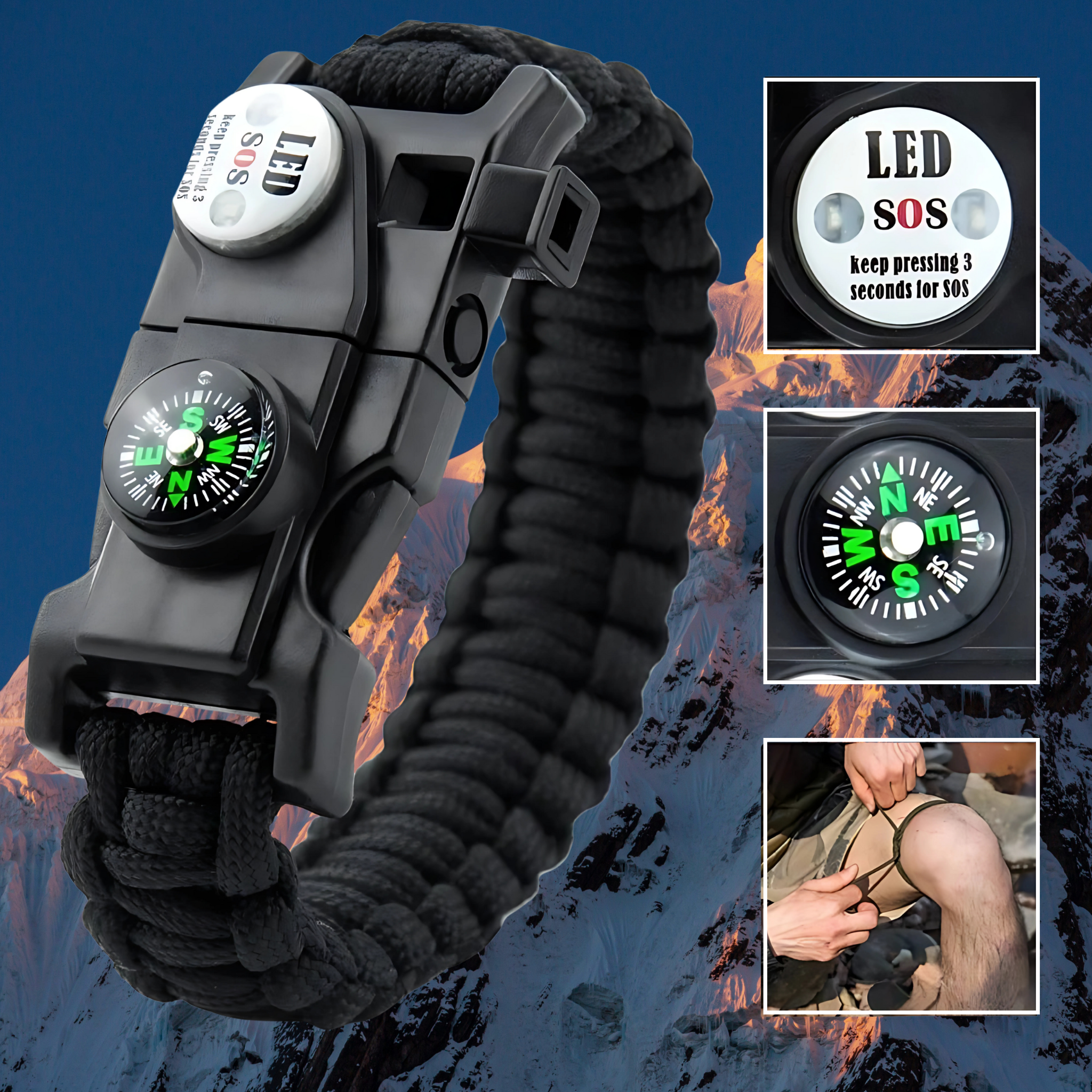 Designed for comfort, the bracelet is adjustable to different wrist sizes and can even attach to backpacks or gear. Made from durable, waterproof materials, it withstands tough outdoor conditions.