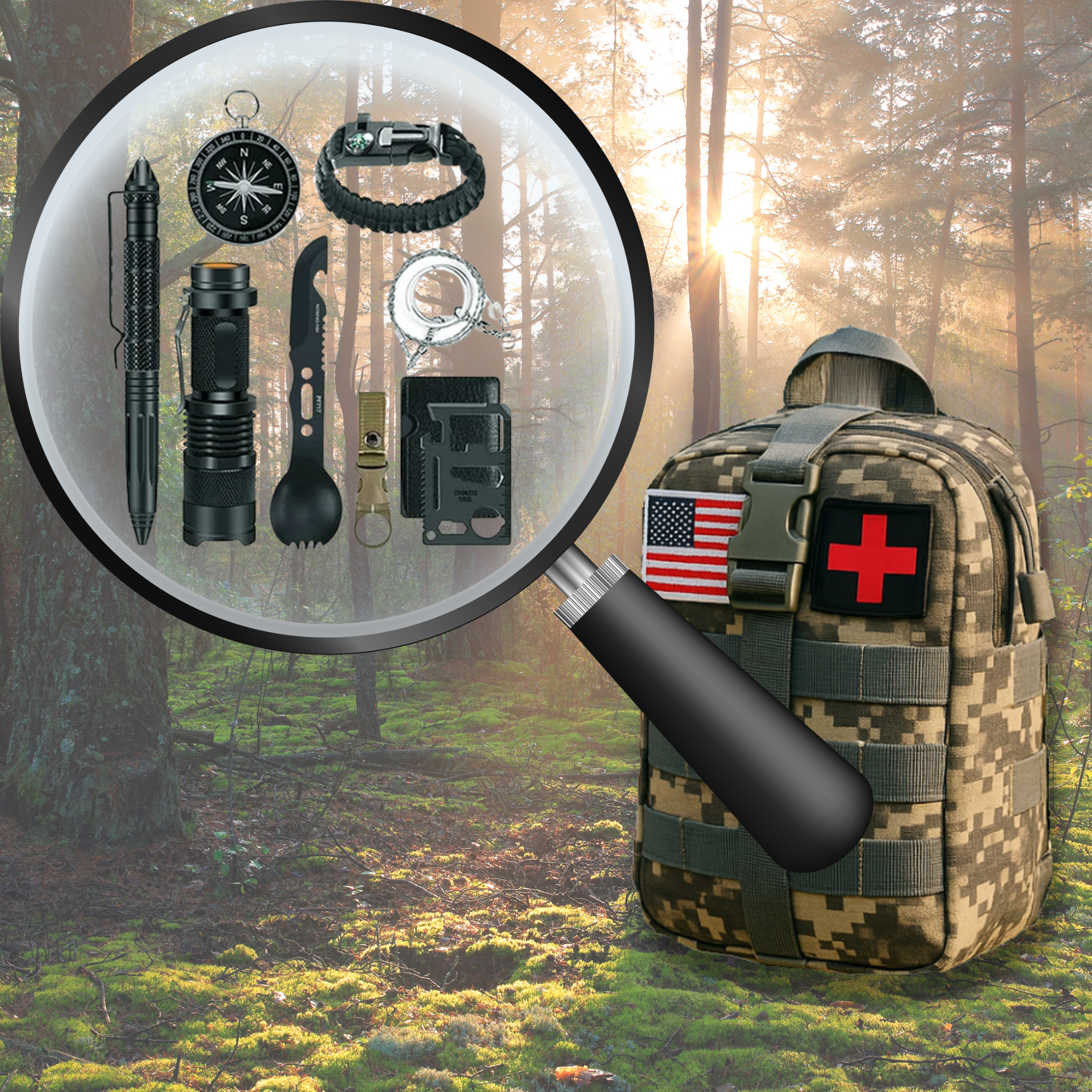 The Tactical Survival Kit is perfect for adventurers, campers, hikers, and anyone who wants to be ready in emergency situations.