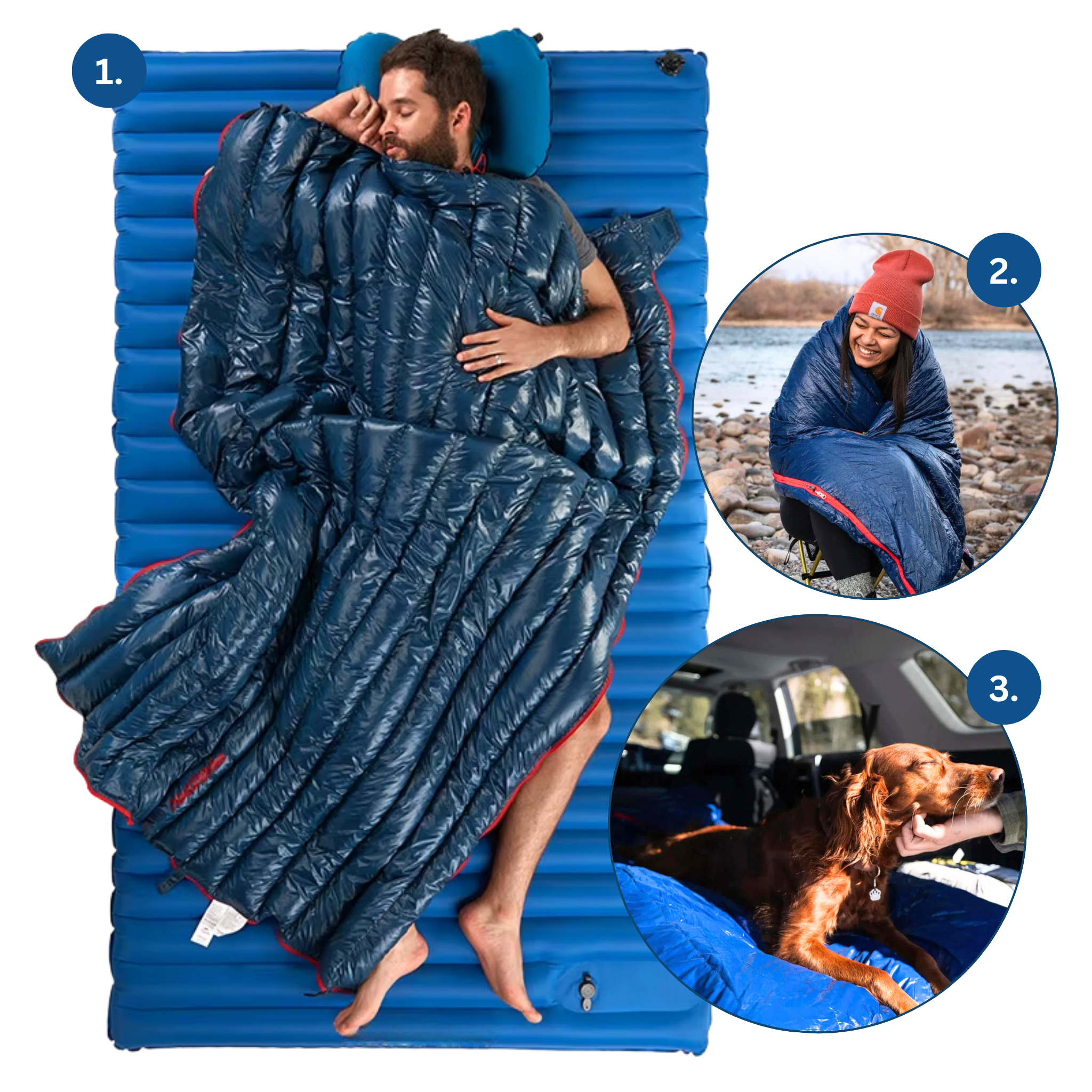 Thanks to the long zipper, you can also use the sleeping bag as a blanket or wear it as a warming cloak on chilly mornings.