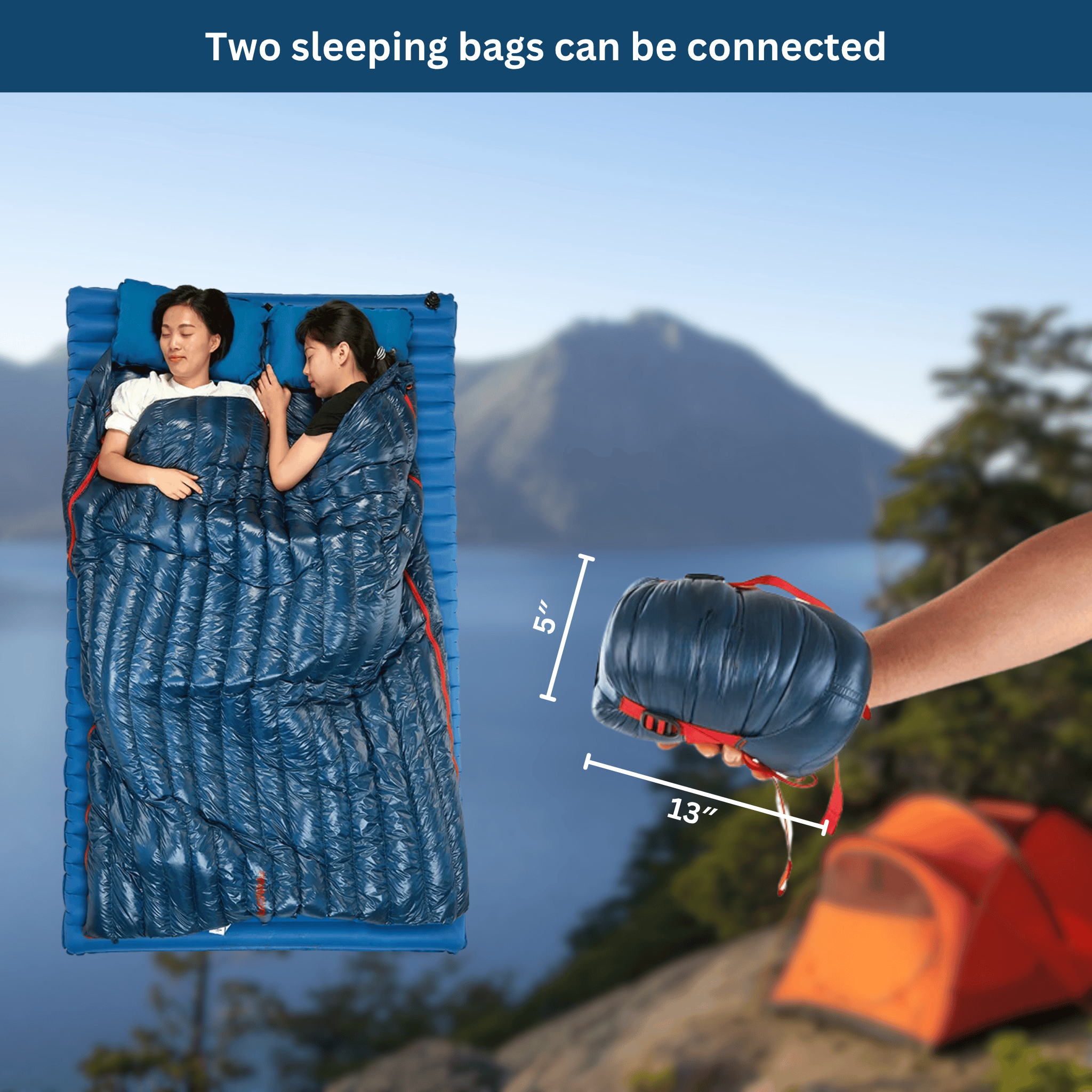 Plus, you can easily connect two sleeping bags to create one extra-large sleeping space.