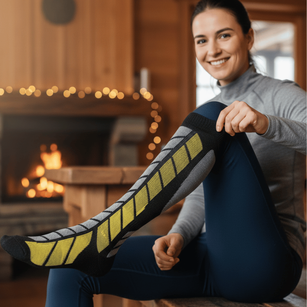 Inside, they are soft and woolly, yet stable enough to provide good support in ski boots. So you get comfort and function in one.